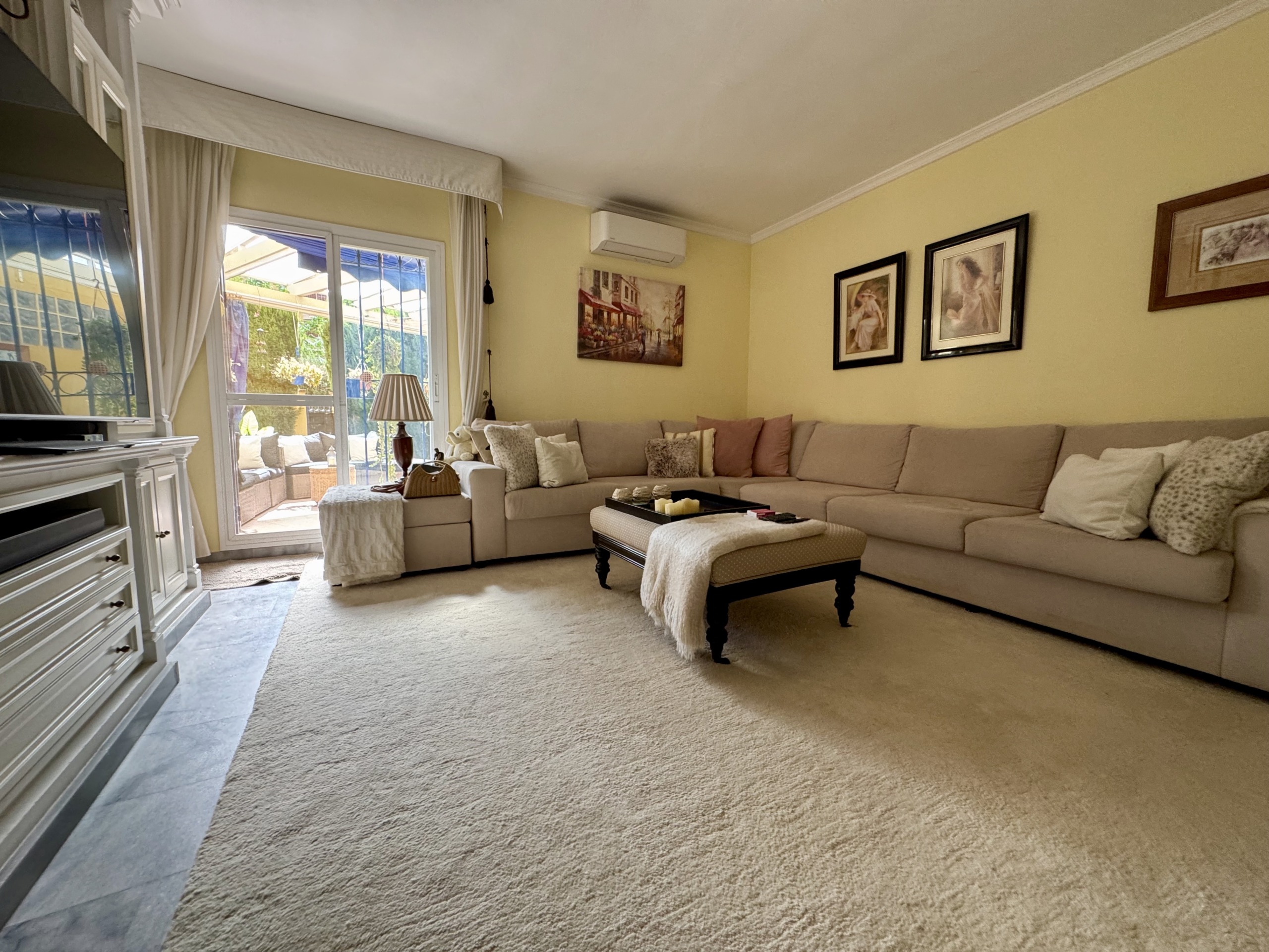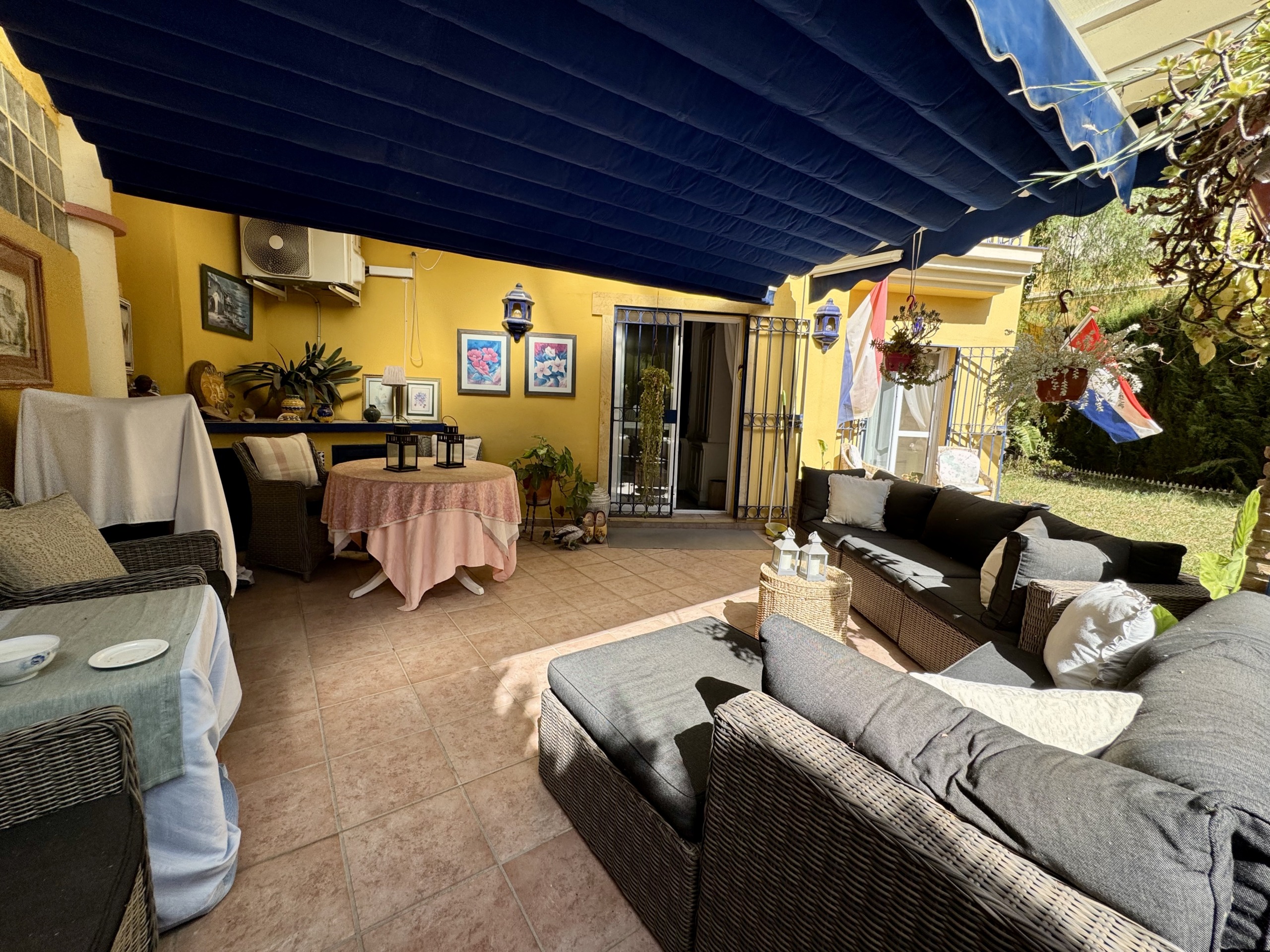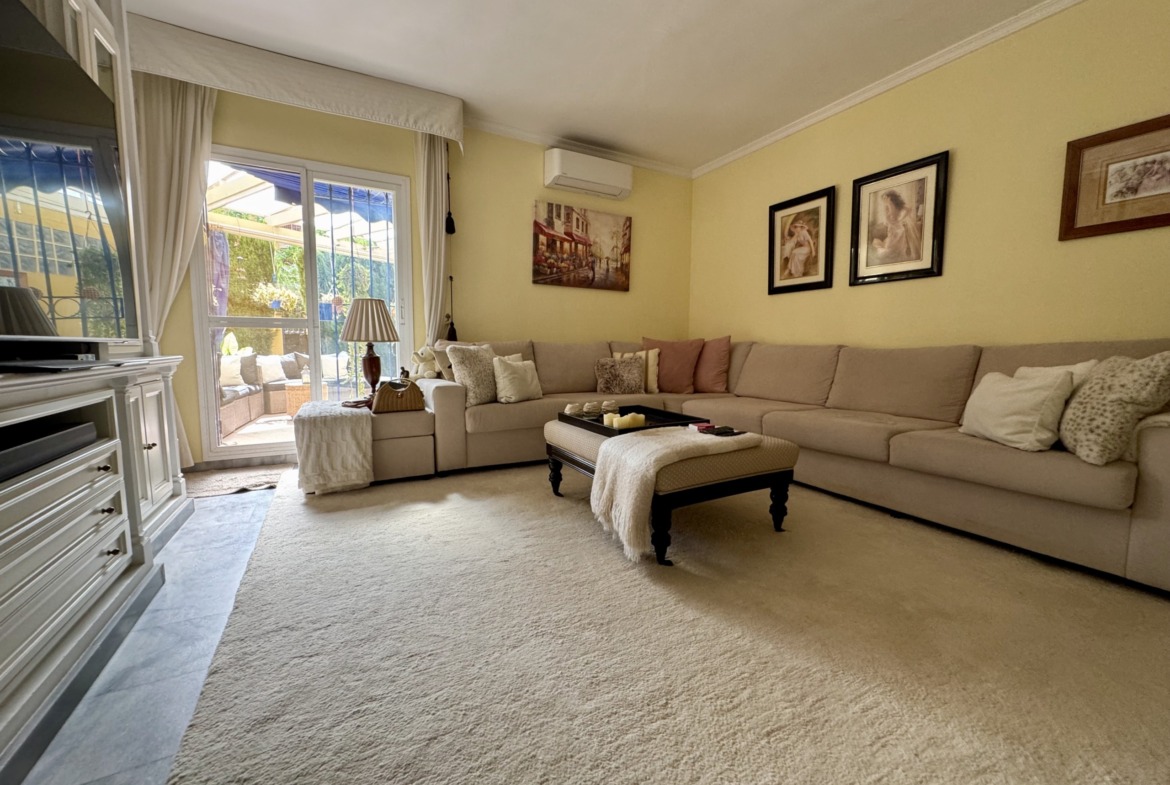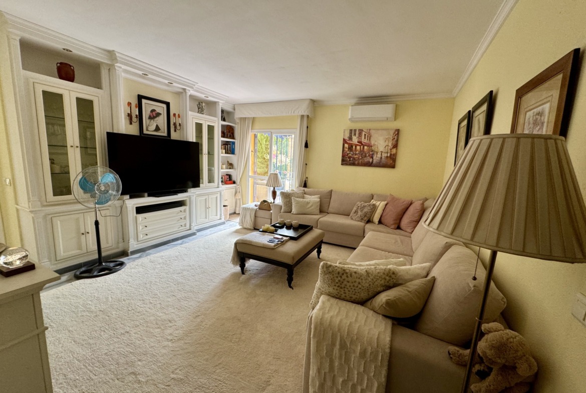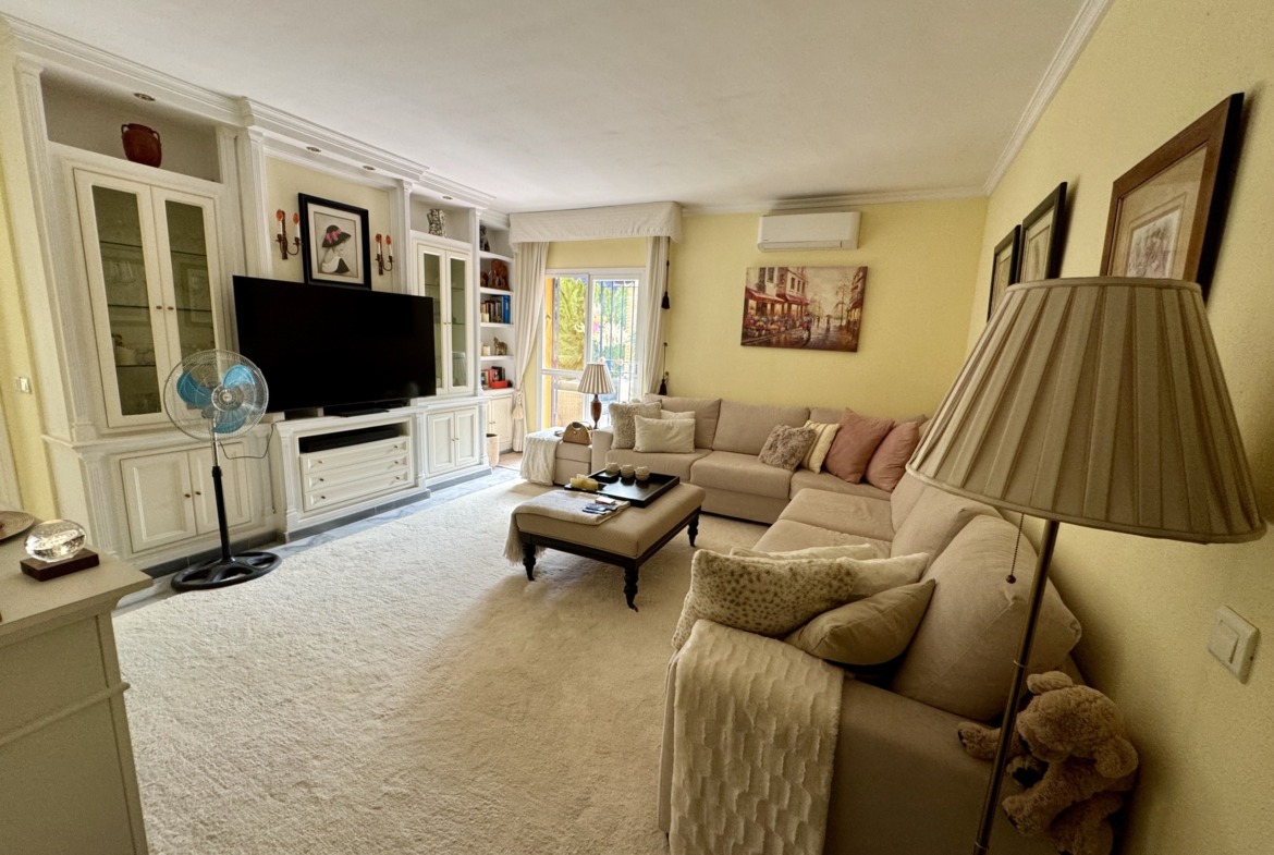 La vivienda se encuentra dentro de un residencial privado con piscina comunitaria y zonas ajardinadas, que destacan por su cuidado y ambiente familiar. Uno de los grandes atractivos de este apartamento es su espectacular terraza y jardín privado de más de 100 m², un espacio exterior único en el que podrás disfrutar del clima mediterráneo durante todo el año. Este gran espacio, conectado directamente con el interior de la vivienda, cuenta con zona de porche cubierta, perfecta para comidas en familia, reuniones con amigos o simplemente relajarse con total privacidad.