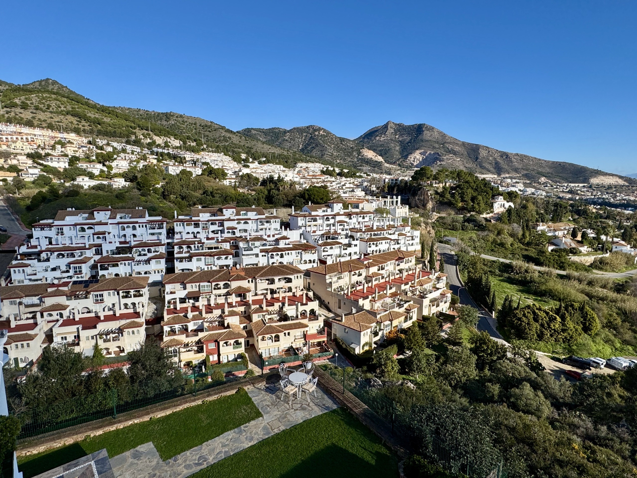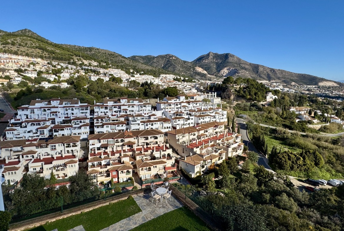 Su ubicación privilegiada le otorga una tranquilidad absoluta, alejada del ruido, pero sin renunciar a una excelente conexión con servicios, autovía y playas como Torrequebrada. La altura y orientación del inmueble hacen que la vivienda sea especialmente luminosa y agradable durante todo el día, convirtiéndola en un lugar ideal tanto para vivir de forma permanente como para disfrutar por temporadas.