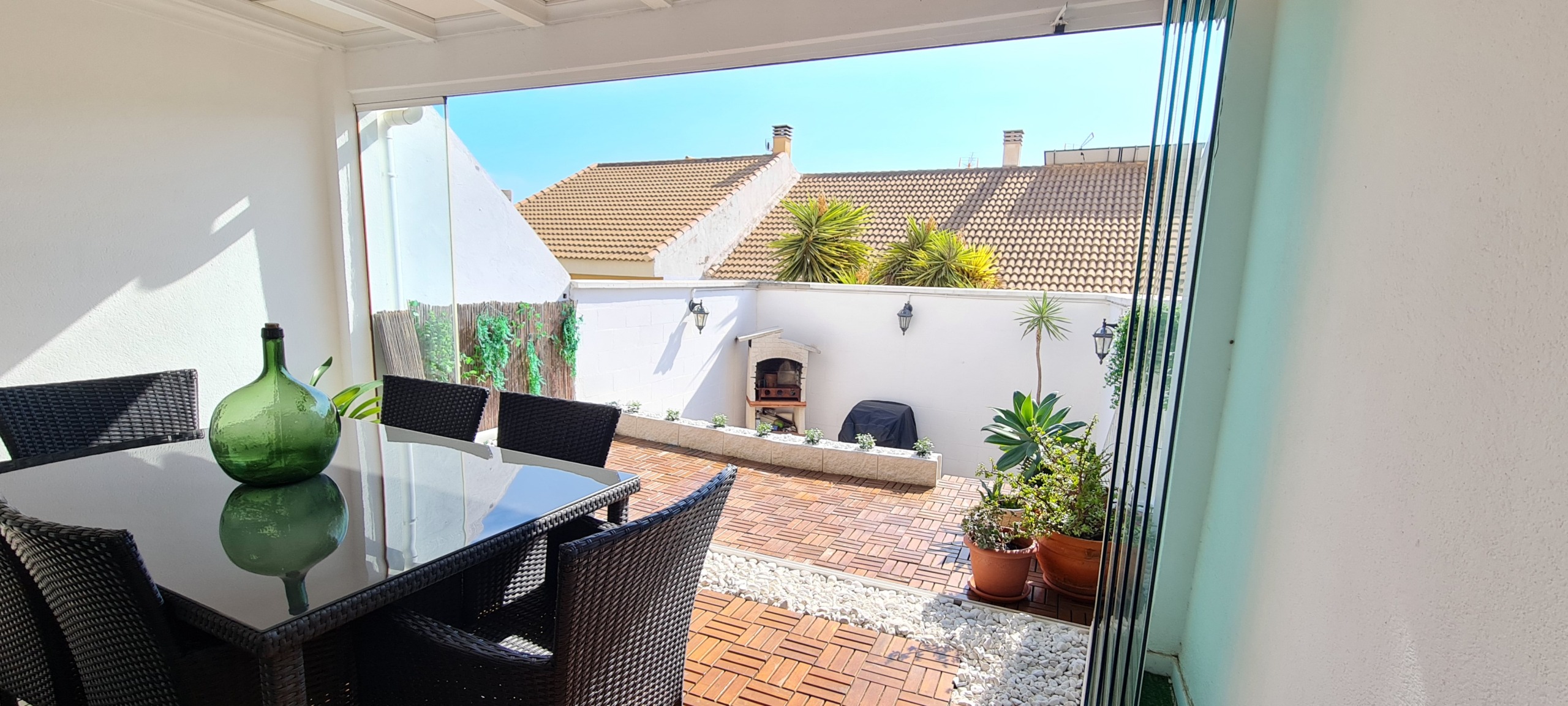 • Planta baja: amplio salón con aire acondicionado, cocina independiente equipada, aseo de cortesía y dos terrazas —una delantera y otra trasera con zona de barbacoa— ideales para disfrutar del aire libre.