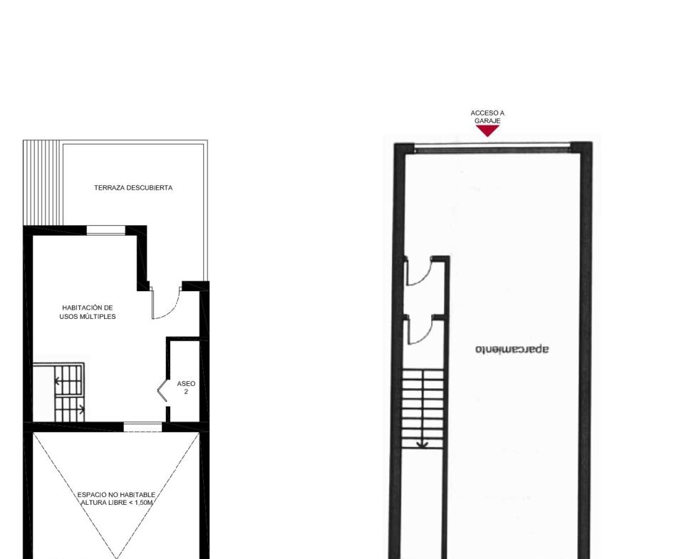 • Sótano: garaje cerrado con capacidad para dos vehículos, acceso directo a la vivienda y espacio adicional para almacenamiento o zona de taller.